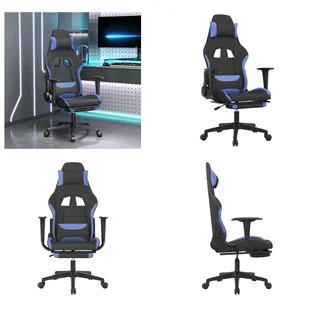 vidaXL Fotel gamingowy z podnóżkiem czarno-niebieski - Fotel gamingowy - Fotele gamingowe - Fotel biurowy - Krzesło