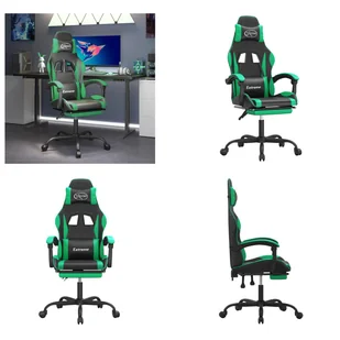 vidaXL Fotel gamingowy z podnóżkiem z czarnej i zielonej sztucznej skóry - Fotel gamingowy - Krzesła gamingowe - Fotel biurowy - Krzesło