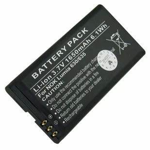 Bateria odpowiednia dla baterii Nokia Lumia 630, Lumia 630 Dual SIM, Lumia 635odpowiednia jako bateria zastępcza dla baterii Nokia BL-5HAccuCell wysokiej jakości replika baterii litowo-jonowej o pojemności 1650 mAh, idealna jako zamiennik lub druga bateria do oryginalnej baterii Nokia BL-5H, MICROSOFT Lumia 630, Lumia 630 Dual SIM, Lumia 635, Lumia 636, Lumia 638, RM-975, NOKIA Lumia 630, Lumia 630 Dual SIM, Lumia 635, Lumia 636, Lumia 638, RM-975 i BL-5H, a dzięki wymiarom ok. 78. 50 x 37,75 x 5,20 mm nadaje się również jako bateria zastępcza dla oryginalnej baterii oznaczonej jako Nokia BL-5H. Dane techniczne (nie jest to oryginalna bateria Nokia)Systemowa bateria litowo-jonowa, napięcie 3,7 V, pojemność 1650 mAh, pojemność 6,1 Wh Wymiary ok. 78,50 x 37,75 x 5,20 mm, waga ok. 29 gramówTa wysokiej jakości replika baterii do telefonu komórkowego posiada zintegrowane zabezpieczenie przed zwarciem i bardzo dobrą elektroniczną ochronę przed przeładowaniem i przegrzaniem.