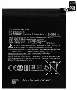 Bateria BN47 do Xiaomi Redmi 6 Pro/Mi A2 4000 mAh Specyfikacja: stan: NOWY towar:Najwyższej jakości zamiennik model: BN47 pojemność: 4000mAh technologia wyko...