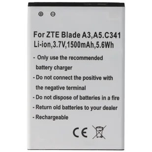 Bateria odpowiednia dla ZTE Blade A3, A5, C341, Li-Ion, 3,7V, 1500mAh, 5,6Wh