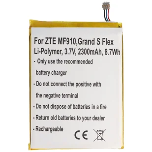 Dzięki elektronice ochronnej nasza bateria zastępcza jest zabezpieczona przed zwarciem, przeładowaniem i przegrzaniem. Dane techniczne (wysokiej jakości zamiennik baterii, nie oryginalna bateria ZTE): System: bateria litowo-polimerowa, napięcie: 3,7 V, pojemność: 2300 mAh, zawartość energii:
