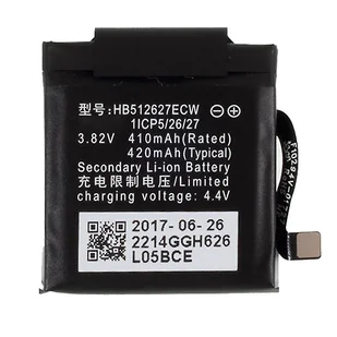 3. 82 V Uwaga: Nie ponosimy odpowiedzialności za jakiekolwiek uszkodzenia zegarka, które możesz spowodować podczas wymiany części zamiennych. Kompatybilny z: •Huawei Watch 2 Pakiet zawiera: •1 x akumulator litowo-polimerowy (bez logo)