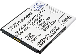 Napięcie: 3. 8V Kolor: Czarny Technologia: Li-ion Pojemność: 2000mAh Moc: 7. 6Wh Nadaje się do następujących modeli urządzeń: HTC Desire 326G HTC Desire 526 HTC Desire 526G+ dual sim HTC HTCD100LVWP W celu sprawdzenia kompatybilności, proszę sprawdzić pod Zastępuje następujące typy oryginalnych baterii: