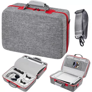 ☀️ Etui Torba Walizka Kuferek do Sony PlayStation 5 PS5 Najlepsza ochrona, najnowszy model Nowe, dedykowane, wzmocnione etui typu walizka zapinane na podwójny zamek do wszystkich modeli konsoli Sony PlayStation 5, PS5 wykonane z wysokiej jakości materiału. Pokrowiec jest bardzo wytrzymały i doskonale chroni Twoją konsolę oraz wszystkie akcesoria pady Dualsense, ładowarkę, headset, stację dokującą, kable zasilające i sygnałowe, gry, słuchawki i wiele innych) przed zniszczeniami mechanicznymi, wstrząsami, wilgocią i kurzem. ✈️ Futerał podróżny posiada specjalny pasek dzięki czemu można go powiesić na ramieniu i przenosić jak torbę. Można także skorzystać z praktycznej, wygodnie wyprofilowanej rączki i przenosić go jak walizkę. ✅Najważniejsze korzyści: