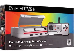 Konsola Evercade Vs-R Evercade Vs-R to najnowsza wersja nagradzanej konsoli do gier retro, zaprojektowanej w inspirowanym historią stylu. Przeznaczona do grania na domowym telewizorze, zawiera w zestawie jeden kontroler, a obsługuje aż do czterech. Kompatybilna z kartridżami Evercade, oferuje ponad 600 gier z ponad 60 kolekcji, obejmujących pięć dekad gier automatowych, konsolowych i komputerowych.