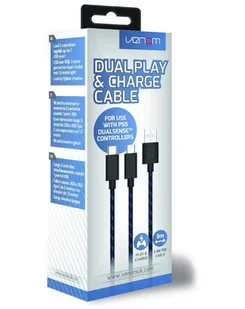 - Wysokiej jakości pleciony podwójny kabel Play & Charge oferuje wygodną długość 3 metrów z podwójnym wyjściem USB typu C, co pozwala na ładowanie maksymalnie dwóch urządzeń / kontrolerów za pomocą jednego kabla.