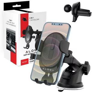 Uchwyt samochodowy 2w1 Alogy do telefonu 6.5" grawitacyjny na szybę, deskę rozdzielczą, kratkę Easy One Touch Czarny