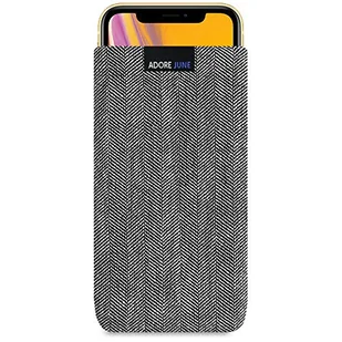 Adore June Biznesowe etui do Apple iPhone XR, etui na telefon komórkowy z charakterystycznego materiału w jodełkę - szare/czarne | etui ochronne akcesoria z efektem czyszczenia wyświetlacza | Made in