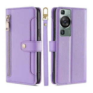 Dla Huawei P60 / P60 Pro Sheep Texture Cross-body Zipper Wallet Skórzane etui na telefon Fioletowy