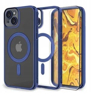 Etui Do Apple iPhone 14 Do Magsafe, Granatowe, Metal, Clear, Case Szkło