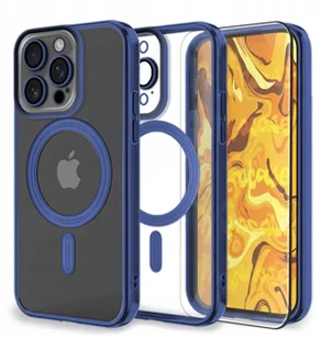 Etui Do Apple iPhone 15 Pro Do Magsafe, Granatowe, Metal, Clear Szkło