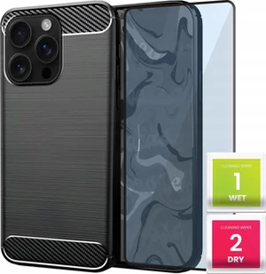 Etui do Apple iPhone 16 Pro (Czarne, Karbon, Pancerne, Case) Szkło 9H