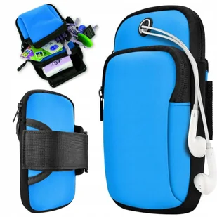 Etui do biegania Artnico PSI-E04 niebieskie Sportowe etui na ramię o dużej pojemności Dwie pojemne kieszenie zapinane na zamek błyskawiczny Do telefonów z ek...