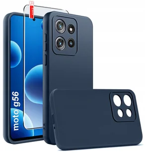 Etui Granatowe Matowe Silikon Slim do Motorola G56 5G + SZKŁO 9H