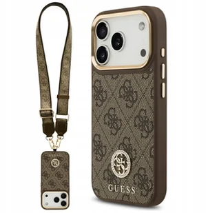 Etui Guess 4G Strass Logo & Big Strap Metal Buttons MagSafe do iPhone 17 Pro brązowy
