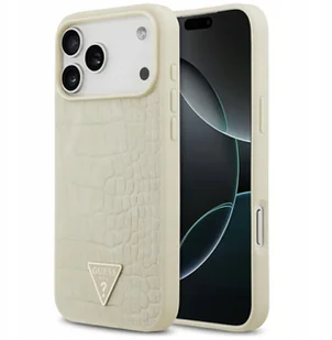 Etui Guess Croco Triangle Logo MagSafe do iPhone 17 Pro Max złoty