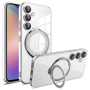 Etui na telefon kompatybilne z komputerem Samsung Galaxy A54 5G + obrotowa osłona podpórki TPU kompatybilna z MagSafe Srebro