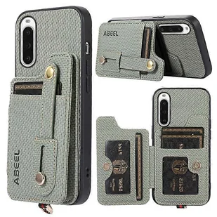 Etui na telefon z podpórką ABEEL Style 01 kompatybilne z Sony Xperia 10 V RFID Carbon Fiber Texture PU + TPU Cover z uchwytem na kartę Zielony