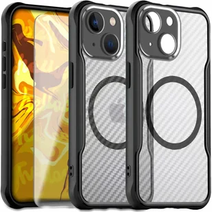 Etui Pancerne do Apple iPhone 15 (Do Magsafe, Karbon, Czarne) Szkło 9H