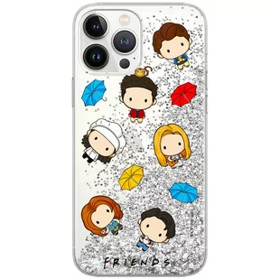 Etui płynny brokat do Apple IPHONE 14 PLUS Friends: Friends 013 oryginalne i oficjalnie licencjonowane, Srebrny