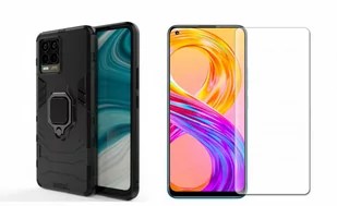 Etui Ring Armor pancerne hybrydowe + Szkło Hartowane do Realme 8 / 8 Pro czarny