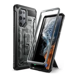 Supcase Unicorn Beetle Pro Galaxy S22 Ultra 5G Wersja kolorystyczna: Gray Camo (szara moro, czarna) Materiał: poliwęglan, termopoliuretan Budowa: hybrydowa, pancerna, lekka Wykończenie: ze stylowymi akcentami na wzór karbonu Osłony: