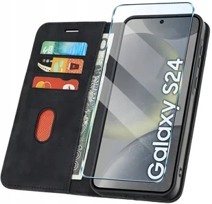 ETUI Z KLAPKĄ do Samsung S24 Zamykane Magnetyczne Kabura Czarne + Szkło