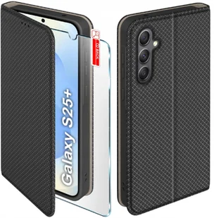 Etui z klapką do Samsung S25+ Plus Zamykane Czarne Futerał + Szkło 9H