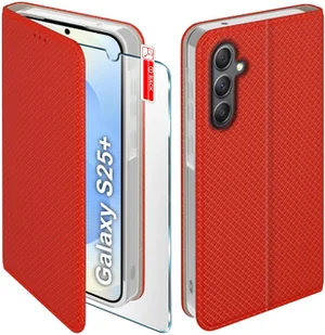 Etui z klapką do Samsung S25+ Plus Zamykane Czerwone Futerał + Szkło 9H