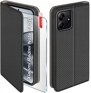 Etui z klapką do Xiaomi Redmi Note 14 5G Zamykane Czarne Futerał + Szkło 9H