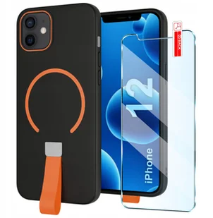 Etui z Paskiem na palec Matowe CZARNE do iPhone 12do MagSafe +Szkło