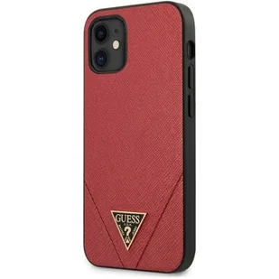 Etui ochronne Guess Saffiano V w kolorze czerwonym, na iPhone 12 MINI wykonane jest z wysokiej jakości skóry ekologicznej. Etui zostało ozdobione ponadczasowym, trójkątnym logo marki Guess. Etui ochrania tył, boki oraz przyciski smartfona Apple, zapewniając dostęp do wszystkich jego funkcjonalności oraz złącz.