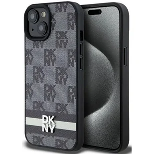 Każde etui zostało ozdobione wyjątkowym motywem inicjałów ekskluzywnego domu mody DKNY, które układają się w niezwykły motyw kratki. Wzór ten jest bardzo charakterystyczny i przyciąga uwagę dzięki swojemu niepowtarzalnemu projektowi. Dodatkową ozdobę stanowią tutaj szerokie paski utrzymane w kolorystyce pokrowca, dzięki czemu osiągnięto harmonię i elegancję. Całość zwieńcza metalowe logo marki DKNY, które podkreśla prestiż i autentyczność kolekcji.