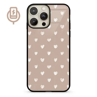 Etui szklane ceramiczne do iPhone 14 Pro Max Serduszka beż