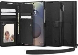 Etui Spigen Wallet "S" Samsung Galaxy S25 Ultra Portfelowe etui z eko-skóry Eleganckie etui portfelowe od marki Spigen z serii Wallet "S" , w którym oprócz dedykowanego smartfona zmieścisz także wiele podręcznych akcesoriów, takich jak karty bankowe, zdjęcia rodzinne, dokumenty , banknoty , itp. Wersja "plus" charakteryzuje się zwiększoną ilością slotów i schowków na przedmioty, spełniając oczekiwania tych, którzy oczekują pojemniejszych futerałów o budowie typu "Wallet". Obudowa wykonana została z mocnego i solidnego poliwęglanu, a całość wykończona została stylową eko-skórą PU o drobnym wzorze saffiano . Ergonomiczna konstrukcja z dopinaną smyczą nadgarstkową sprawiają, że całość świetnie i bezpiecznie leży w dłoni oferując wygodny i pewny chwyt. Kolor producenta :
