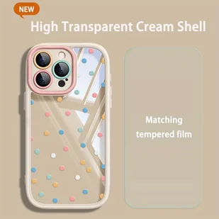 TEMU Etui na telefon - Zestaw dwuczęściowy: Wysoka przezroczystość Krem + Szkło Hartowane, Kolorowe Małe Okręgi w Kolorze Fioletowym, Białym, Czarnym