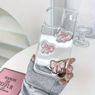 TEMU Etui na telefon: Przezroczyste akrylowe, duże otwory, ręcznie robione epoksydowe czerwone kokardy, 2 w 1 etui na iPhone 11, 12, 13, 14, 15 Pro