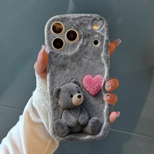 TEMU Etui na telefon - Wspaniałe etui na telefon odporne na upadki i zarysowania, z uroczym szarym misiem Teddy z różowym sercem na miękkim tle,