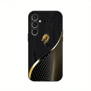 TEMU Etui na telefon wykonane z twardego szkła hartowanego z głową złotego i czarnym teksturowanym wzorem, kompatybilne z różnymi Samsung Galaxy, w