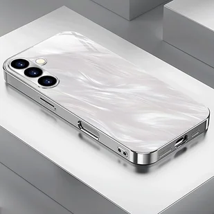 TEMU Etui na telefon: Piękny i Elegancki Biały Zakrzywiony Szkło Elektroplaterowane Design Biznesowe Etui dla Galaxy S25, S24 Ultra, S23 FE, S23, S22