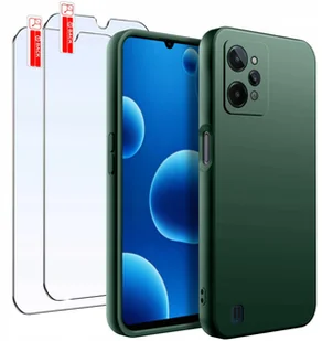 ZESTAW Etui do Realme C31 Matowe Zielone Silikon Slim +2 SZTUKI SZKŁO