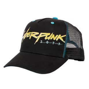 Czarna czapka z logo Cyberpunk 2077 nadrukowanym z przodu.