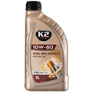 K2 Racing 10W60 jest to olej przeznaczony do najbardziej wymagających silników pracujących w najcięższych warunkach i w bardzo wysokich temperaturach. Polecany do pojazdów rajdowych, wyścigowych i terenowych. Zapewnia najwyższy poziom ochrony i czystości przez cały okres eksploatacji. Utrzymuje maksymalną wydajność silnika oraz zapewnia doskonałą wytrzymałość filmu olejowego. Spełnia wymagania najnowszych norm ACEA (European Automobile Manufacturers' Association - Stowarzyszenie Europejskich Producentów Pojazdów) A3/B4-08, oraz API (American Petroleum Institute - Amerykański Instytut Nafty) SN/CF, BMW LONGLIFE-01, M-MODELS, a także wymagania norm jakościowych: