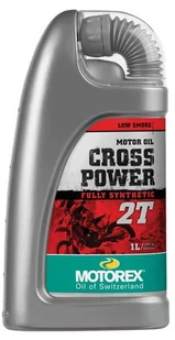 W pełni syntetyczny, wysokosprawny olej silnikowy dla motocykli dwusuwowych. Olej specjalnie zaprojektowany na trudne warunki użytku terenowego (off-road). Nazwa: MOTOREX CROSS POWER 2T - 1L - niezwykle niezawodne naoliwienie, - specjalnie stworzony dla maszyn Enduro i Motocross, - zaprojektowany przy pomocy wiodących drużyn wyścigowych.
