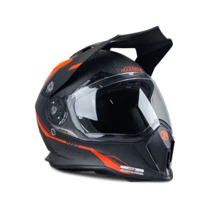 Inspiracją dla projektantów J14 były wyścigi w najtrudniejszym terenie. Ten kask sprawdzi się podczas dalekich podróży, miejskich przejażdżek czy też jazdy off-roadowej. Połączenie komfortu i bezpieczeństwa kasku integralnego z typową dla kasków off-roadowych funkcjonalnością, niską wagą i wentylacją. Charakterystyka produktu: • Skorupa wykonana w całości z włókna węglowego.