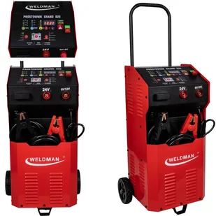 Inteligentny prostownik miroprocesorowy na kółkach GRAND 820 800A WELDMAN Kod produktu: 104522 Producent: WELDMAN Opis: Dane techniczne: Typ urządzenia GRAND 820 Napięcie zasilania [V] 230 Pobór mocy ładowanie/rozruch[kW] 2,5/17 Napięcie prądu [V] 6/12/24 Znamionowy prąd ładowania [A] 15/40/65 (BOOST) Znamionowy prąd rozruchu [A] 12/24: