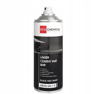 FARBA LAKIER CZARNY MAT AKRYL ECOCHEMICAL Nr art. A 075 Pojemność: 400ml BLACK MAT to wysokiej jakości, szybkoschnąca farba o matowym efekcie wykończeniowym. Znakomita do malowania metalu, tworzyw sztucznych, drewna, cegły, gipsu i papieru. Farba czarna matowa w aerozolu może być stosowana do lakierowania całych powierzchni, jak również do częściowych napraw.