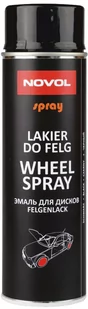 NOVOL Wheel Spray Lakier do Felg Kołpaków CZARNY MAT Szybkoschnący lakier akrylowy do renowacji i napraw felg oraz kołpaków ze stali i metali lekkich. Lakier ten jest produktem o bardzo dobrych właściwościach kryjących, trwałym połysku, odporności na wodę, benzynę i warunki atmosferyczne. Produkt posiada dyszę FAN, dającą strumień natrysku zbliżony właściwościami aplikacyjnymi do dyszy pistoletu konwencjonalnego. UWAGA! Po użyciu należy oczyścić zawór. W tym celu odwrócić pojemnik i rozpylać przez ok.