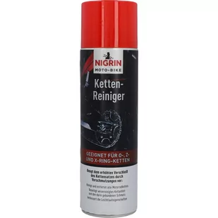 NIGRIN MOTO-BIKE preparat do czyszczenia łańcuchów skutecznie usuwa zabrudzenia i chroni mechanizm przed korozją i zużyciem. Preparat MOTO-BIKE służy pielęgnacji łańcuchów typu o-ring, z-ring oraz x-ring. Myje, czyści, odtłuszcza, zapewnia prawidłową pracę mechanizmu, chroni przed zbyt szybkim zużyciem. Preparat łatwo się aplikuje, dociera do trudno dostępnych miejsc. To niezbędny środek pielęgnacyjny dla każdego motocyklisty.